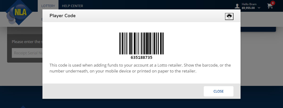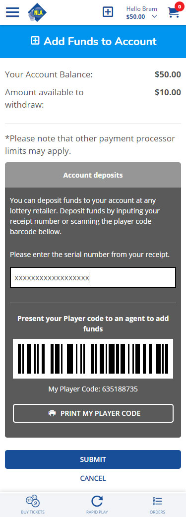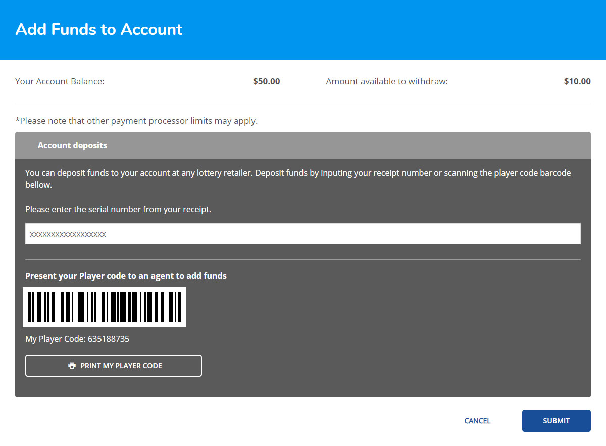 4. Give the retailer the funds you wish to add to your account and let the retailer scan your player code.